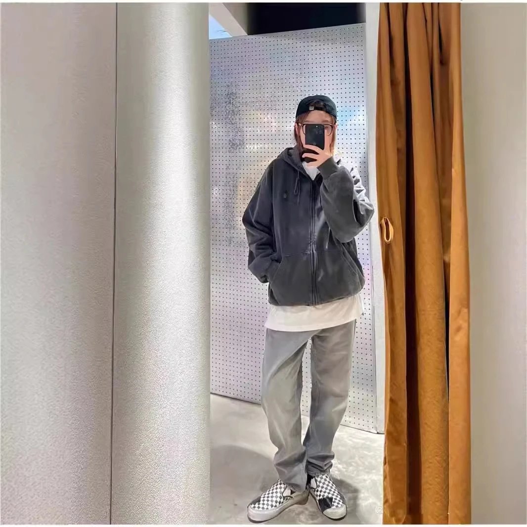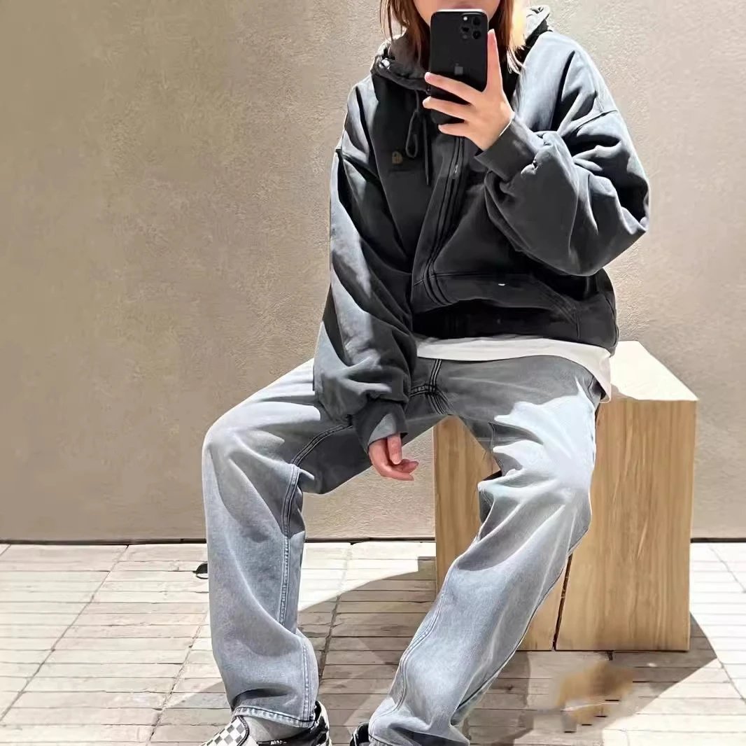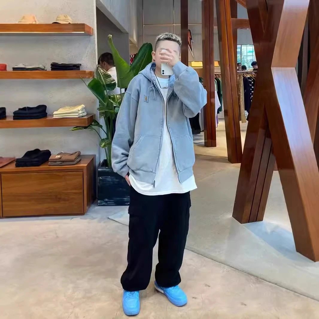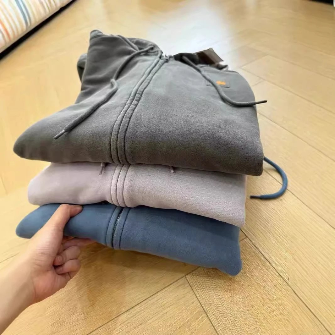 重磅蜡染卫衣怀旧休闲拉链帽衫开衫纯色男女-CY