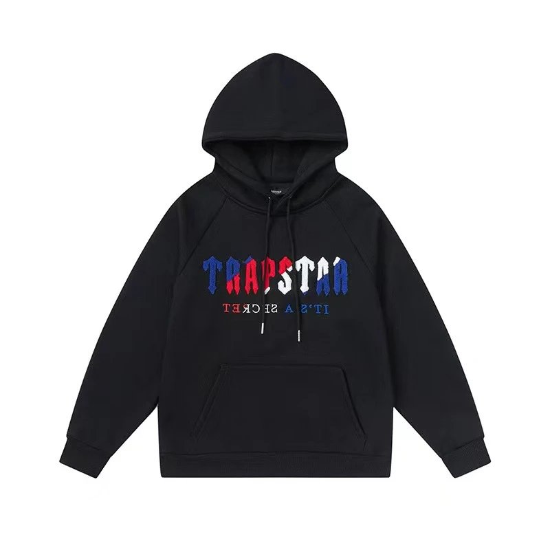 MC.外贸Trapstar经典款彩虹渐变字母毛巾绣加绒宽松休闲连帽卫衣套装