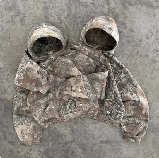 RF.跨境美式复古卫衣男士shi宽松小众拉链外套连帽卫衣外穿痞帅上衣