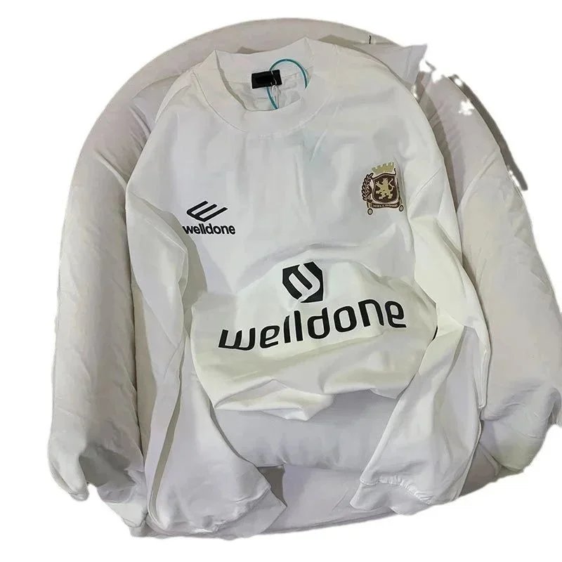 WE11DONEWHITE潮牌welldone秋季新品数字字母印花球衣长袖男女T恤